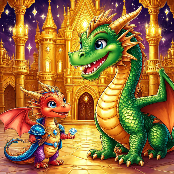 В далекой стране, где небо встречается с землей, жил дракон Рагон, мудрый и сильный король, обладавший величественной силой и глубоким пониманием жизни. Он был отцом маленького дракончика Валериана, принца, который с любопытством и восторгом смотрел на мир вокруг из окон их великолепного дворца, украшенного сверкающими драгоценностями и яркими цветами. Однажды, когда солнечные лучи пробивались сквозь облака, создавая волшебные узоры на земле, Рагон собрался рассказать своему сыну о своих удивительных приключениях в неизвестной Стране.