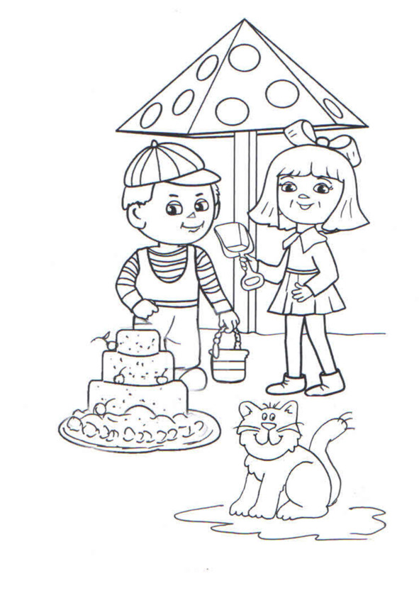 Две подружки-умницыВ песочнице играли.Для тортика «песочного»Камней насобирали.Братик младший ВанечкаПринёс ведро с водичкой,Формочки красивые:Звёздочки и птички.Песок немного увлажнилиИ тортик горочкой слепили.Затем всё стали украшать,Друзей на праздник приглашать.Все понарошку ели торт,И дворовой соседский кот.~Татьяна Вода~