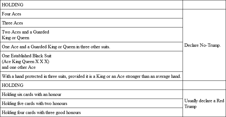Declare clubs instead of spades when you hold but one or two spades and a club suit of four or more cards including two honours.