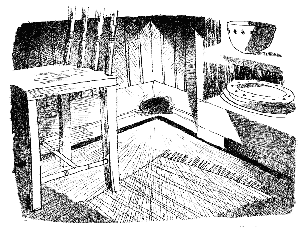 Раньше в квартире тётушки Лулы в доме из красного кирпича камнекомнаты не было. Но Барсук кое-что улучшил. Он вытащил из комнаты диван и мягкие кресла. Сложил в коробки книги и настольные игры. Задвинул каминную заслонку. Затем протолкал в дверь свой камнестол и камнестул и приладил рабочую лампу. Над камином он развесил молотки и камнепилки. Камнеточка примостилась на скамейке у окна. На книжных полках отлично разместились коробки с камнями и минералами. Он расставил их в алфавитном порядке, а самые хрупкие экземпляры обернул салфетками. В сам камин Барсук пирамидкой сложил жеоды. («Красота!») Наконец, Барсук открыл раздвижные двери, освобождая путь на кухню, чтобы можно было быстро подкрепиться горсткой сухих хлопьев, и объявил камнекомнату полностью готовой.