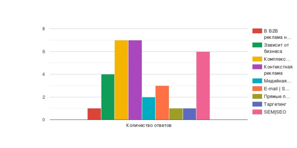 Для B2B – наши эксперты отметили: контекстную рекламу, SEO и комплексный подход. Можно сделать вывод, что эти направления должны быть основными канала для продвижения B2B компаний.