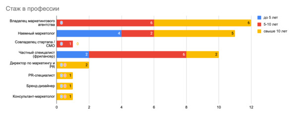 Сначала, мы обозначим параметры наших респондентов. Мы старались собрать как можно более опытных специалистов, у многих из них свои агентства. Мы начнем транслировать вопросы, предоставлять ответы визуализировать и комментировать их по необходимости: