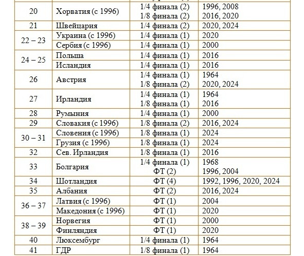 Сборные на чемпионатах Европы по футболу. По состоянию на 2024 год