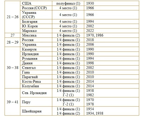 – Украины – с учётом результатов сборной СССР – как внесшей значительный вклад в успехи сборной СССР;