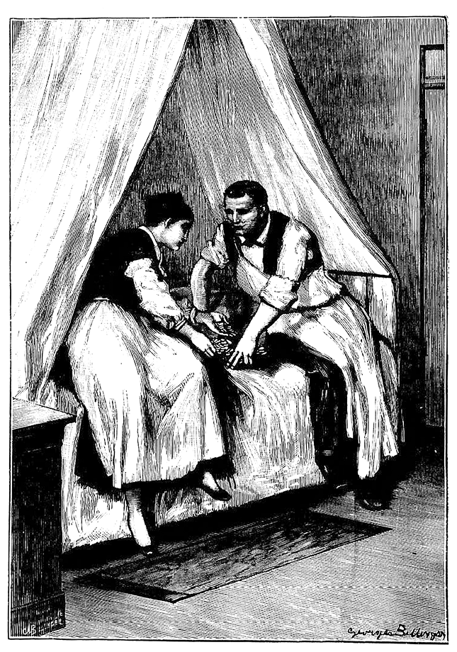 После таких слов Кеню еще больше стал ценить Лизу. Тем не менее он расхохотался в лицо соседу, когда тот поддразнил его, сказав, что он влюблен. Действительно, Кеню не испытывал никаких любовных терзаний, и отношения между молодыми людьми оставались чисто дружескими. По вечерам, перед сном, они вместе поднимались наверх. Продавщица занимала рядом с темным чуланчиком хозяйского племянника маленькую комнатку, которую она обратила в необыкновенно уютный и светлый уголок, украсив ее белыми кисейными занавесками. Кеню и Лиза на минуту останавливались на площадке со свечой в руке, разговаривая между собой, пока вкладывали ключи в замочную скважину. Затем они запирались каждый у себя, ласково сказав друг другу: