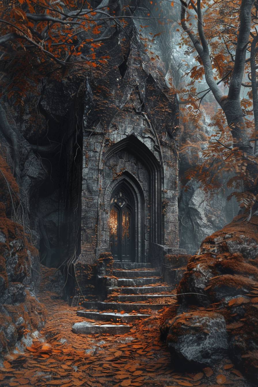 Не пересекая реки, они двинулись по склону вниз. Пришлось перейти на шаг – каменистая местность не позволяла иного. Отвесная скала возникла словно ниоткуда. Чонсок даже несколько раз морнул, подумав, что его разум помутился. Ещё недавно они были в лесу, на отдалении шумела река, и вот – гора и тишина. Появившаяся каменная тропинка, прикрытая пожелтевшей, увядшей листвой, вела к ступеням и вратам. Конструкция, сложенная из крупного обтесанного камня, имела закованные в железо двери и казалась неотъемлемой частью гор. Остроконечные силуэты и устремленность ввысь носили ярко выраженные особенности эльфийской архитектуры.