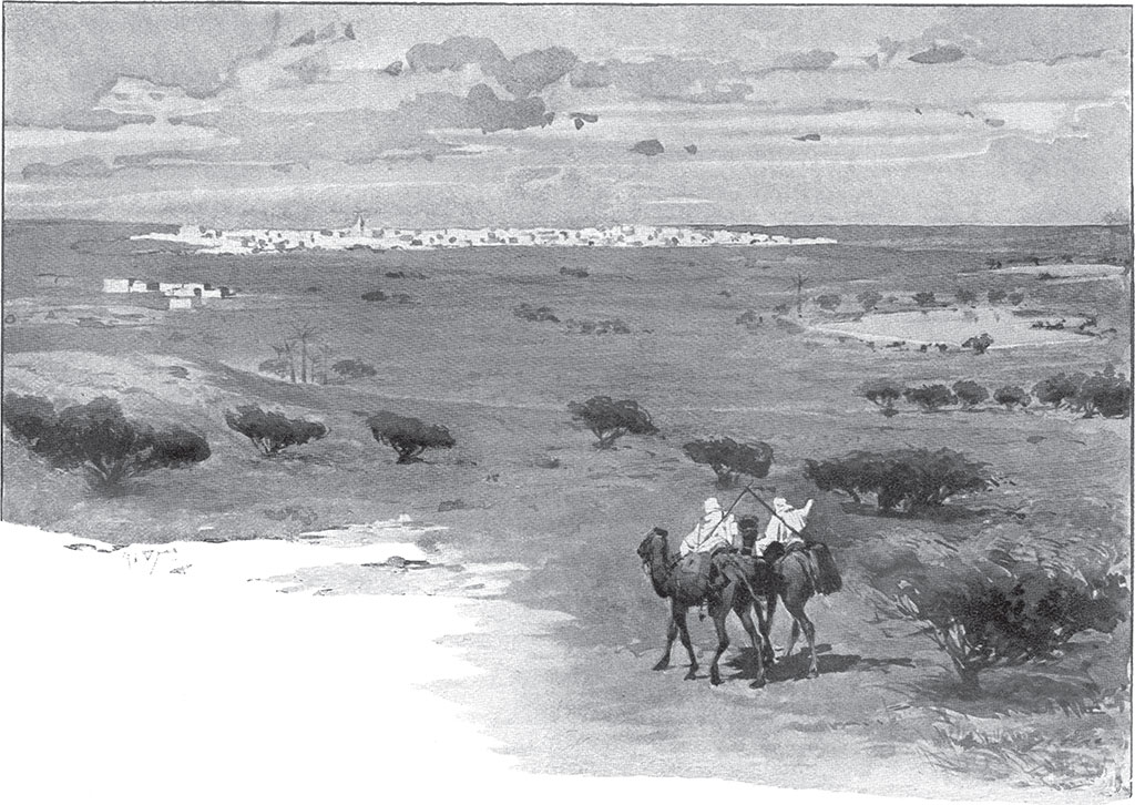 На закате, после восьмичасовой гонки путники увидели на горизонте изломанную линию минаретов и башен…