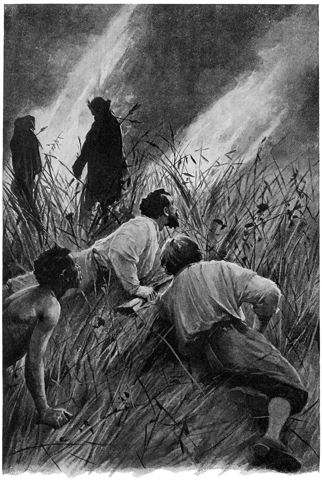 Ужасный грохот, поднятый флибустьерами, казалось, произвел должное впечатление на таинственных врагов: никто из них не подавал признаков жизни. Правда, несколько стрел пролетело над головами флибустьеров, но они не причинили вреда.