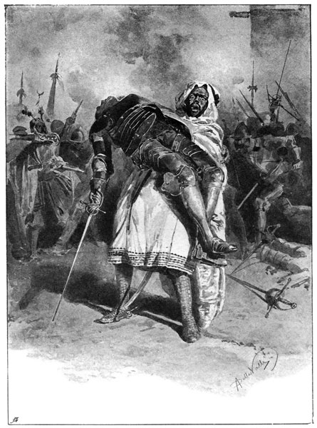 Вне себя, Эль-Кадур схватил свою хозяйку в охапку, прижал ее к груди и бросился с бастиона в город, не обращая внимания на пули и осколки камней, летевшие со всех сторон.
