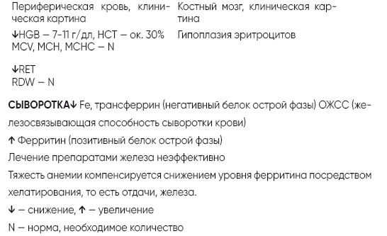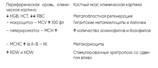 Типичная клиническая картина этого вида анемии в результатах анализа крови
