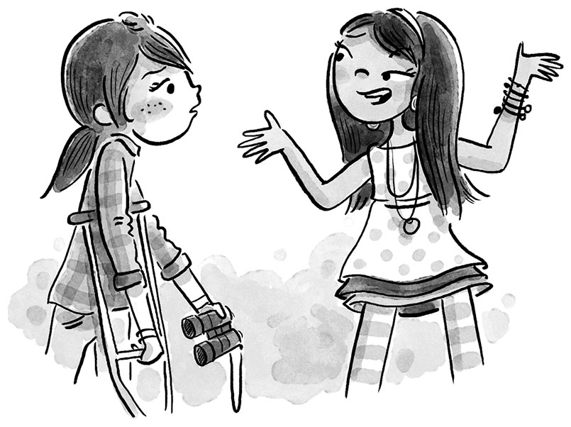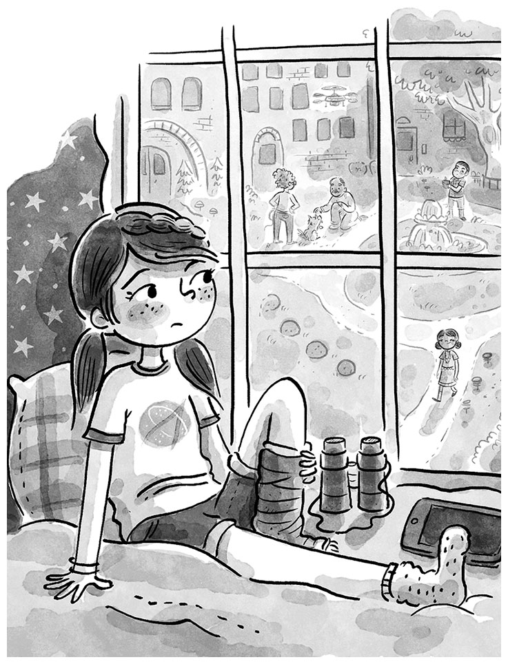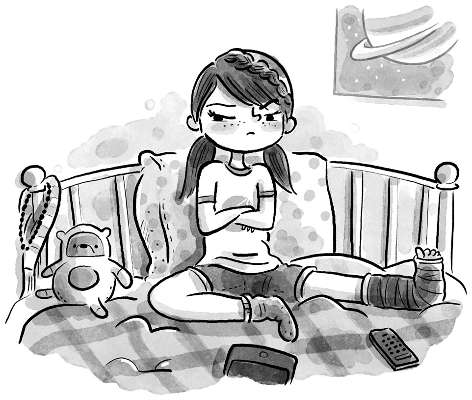 В книге было много цитат из полевых заметок самого Дарвина. Ада снова уселась у окна и попробовала почитать, но так и не смогла сосредоточиться: нога очень чесалась. Девочка взяла карандаш и попыталась поскрести под гипсом, но карандаш был слишком коротким. Она достала из ящика стола линейку, но линейка оказалась толстой и не пролезала под гипс. Зуд становился всё сильнее и распространялся по всей ноге, перемещаясь то вверх, то вниз! Ада отчаянно искала в комнате подходящий инструмент.