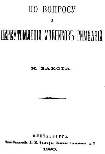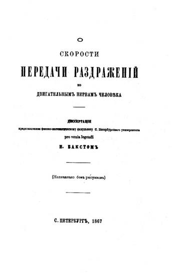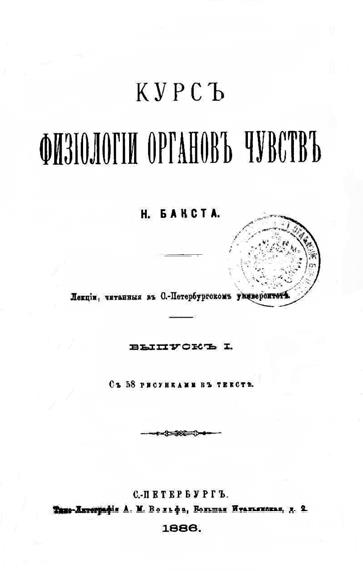 В той же лаборатории Гельмгольца Бакстом была выполнена еще одна исключительно интересная работа. Она касалась времени, необходимого для того, чтобы зрительное впечатление дошло до восприятия его сознанием. Помимо того, оценивалась еще и зависимость сознательного восприятия от продолжительности впечатляющего фактора. Результаты, впервые добытые Николаем Игнатьевичем в этой труднейшей области нейрофизиологии, до настоящего времени сохранили свое значение и свидетельствуют они не только об удаче эксперимента, но скорее о редкой добросовестности, с которой были произведены эти исследования.