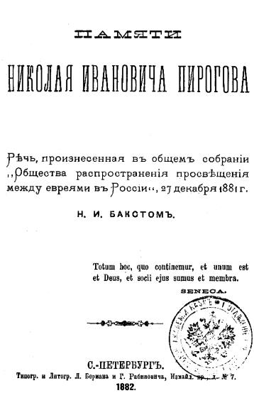 Брат Бакста – Владимир Игнатьевич (1835–1870), врач по образованию, также работал у Людвига в Лейпциге на протяжении более двух лет. Результатом скрупулезных экспериментов стала его диссертация по возбудимости кожных нервов. К сожалению, дальнейшая его судьба остается неясной, каких-либо сведений о его службе в России не сохранилось. К тому же он умер в относительно молодом возрасте. Третий брат Осип Игнатьевич, издатель и переводчик, родился в 1835 году, умер в 1885 году [66, 76].