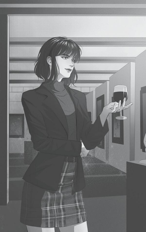Сама хозяйка вечера была… необычной. Точнее, имелось в ней что-то, что вызывало смутную тревогу и волнующий трепет в груди, но с одного взгляда было непонятно, дело в её экстравагантном стиле или в чём-то ином: прямая чёлка, волосы до середины шеи за исключением нескольких прядей, обрамлявших лицо и почти достигавших ключиц. Радужка её глаз напоминала мне глухую беззвёздную ночь, а уголки их были подведены алым, отчего глаза казались длиннее, а взгляд – хитрее. Пухлые губы были накрашены бордовой, почти чёрной помадой, след от которой остался на её бокале с вином. В какой-то момент девушка посмотрела в мою сторону, и в уголках её губ притаилась тень усмешки.