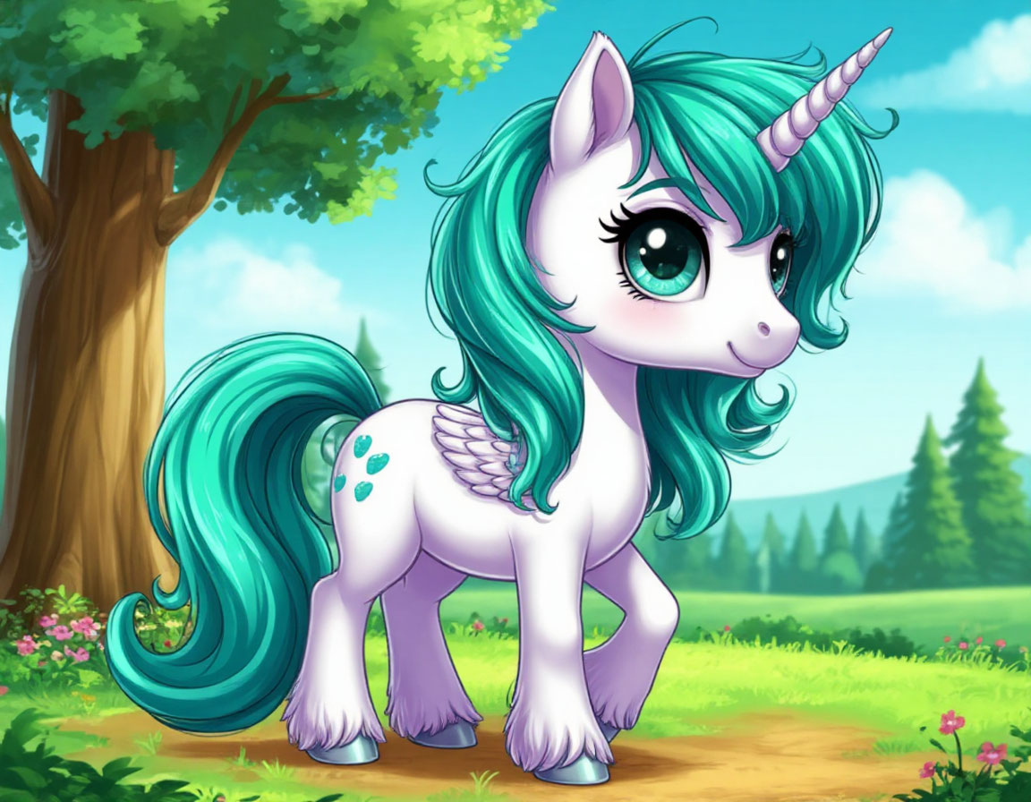 Звёздочка простая единорожка. Хоть и волшебница немножко. Она бирюзовая. Грива и хвостик серебряные. А рог обыкновенный. Белый.