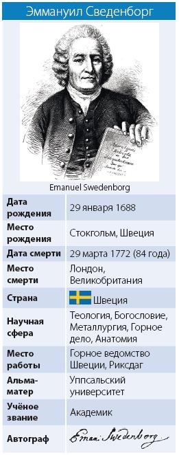 Эммануил Сведенборг (Emanuel Swedenborg, урождённый Эммануил Сведберг, Emanuel Swedberg; 29 января 1688, Стокгольм – 29 марта 1772, Лондон) – шведский учёный-естествоиспытатель, христианский мистик, теософ[287], изобретатель.
