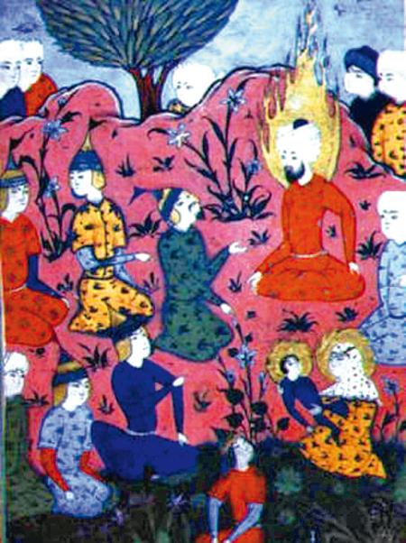 Персидская миниатюра, изображающая Нагорную проповедь в исламском представлении
