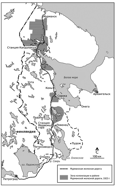 Милитаристские представления были довольно распространены после неудачной попытки Витте начать железнодорожное строительство на Мурманском побережье в 1890‐е годы. Они находили отклик среди правительственных чиновников и предпринимателей, которые пересмотрели свои представления о железнодорожном сообщении сразу после начала Первой мировой войны107. В 1912 году Олонецкая губерния сотрудничала с центральными государственными ведомствами, чтобы основать частную компанию для постройки железной дороги из Санкт-Петербурга в Петрозаводск. Олонецкие власти искали финансирование как в России, так и за рубежом и начали строительство летом 1914 года108. В это время в государственных кругах и в образованном сообществе вращались идеи о важности дальнейшего освоения Севера, включая проекты строительства железной дороги до Мурмана и строительства железной дороги через Великое княжество Финляндское в обход Кольского полуострова109.
