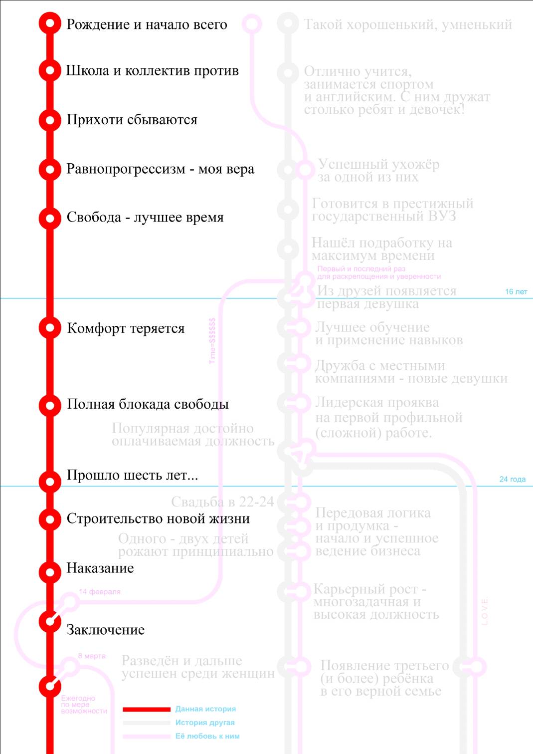 В конце концов, твоя материальная жизнь устаканена, и в округе никому непонятно что у тебя ещё могут быть за проблемы. Твои разговоры «не в тему» никогда никому не слышны. С самого детства по СМИ ты видишь множество красивых молодых девушек и взрослых женщин, мечтая просочиться в ту сторону экрана или наяву сблизиться с подобной – пусть видом попроще. Время проходит: с порядком развратным теликом и журналами уже конкурируют наглядные действия твоих сверстников 14 – 16 лет, а дальше – больше… Поход в гости к родным на праздные даты, и общение с ними-регулярно приглашающими тебя с самого детства и рождения – в твоём возрасте давно уже полный отстой, что также давно должен смениться походами к твоей (несуществующей к сожалению) любимой сверстнице в её компанию друзей-подруг; общение и что-то большее с ней и с ними под конец гостевания.