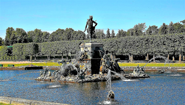 Для того, чтобы познакомиться с уникальным историческим фонтаном необходимо подняться на террасу перед Большим каскадом и пройти в Верхний сад Большого Петергофского дворца. Там установлен шедевр немецкого искусства XVII столетия – скульптурная композиция «Нептун». Этот фонтан можно отнести к лучшим образцам монументалистки из числа построенных за последние триста с лишним лет.