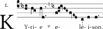 b) Хоральная нотация: невмы на четырех линейках нотоносца, с ключом до на верхней линейке, указывающие на высоту и относительную продолжительность нот (однако не на точный ритм).