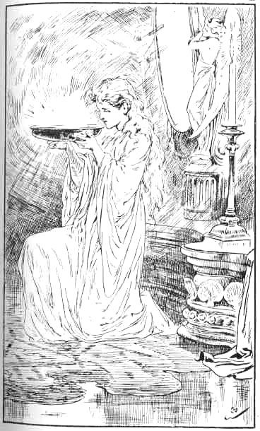 Когда она пела, вода в серебряном тазу пенилась и пузырилась, а затем снова опала… Принцесса опустилась на колени посреди комнаты, и луна и белый свет от зеркала луны упали в воду.