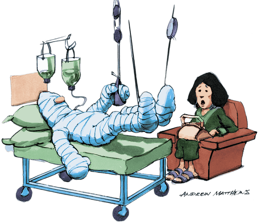 Тренту захотелось отдохнуть. Он отправился на рыбалку и порезал ногу о камень. Порез был неглубокий, но заживать никак не хотел. Дабы подстраховаться, Трент пошел к врачу. Доктор сказал: «Не обращайте внимания! Просто немного воспалилось сухожилие». Но когда ногу раздуло до слоновьих размеров, Трент решил узнать еще чье-нибудь мнение. Хирург вынес вердикт: «У вас обширное инфекционное заражение. Вы можете лишиться ноги».
