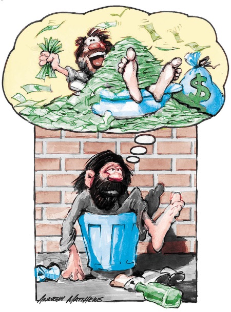 Самой поразительной иллюстрацией взаимосвязи между мышлением и уровнем благосостояния являются победители всяческих лотерей. Люди думают, что этими шальными деньгами они смогут решить все свои проблемы. Тем не менее уже через пару лет после этого неожиданного счастья такие люди оказываются по уши в долгах и живут даже хуже, чем до выигрыша. Почему? Да потому что от любых миллионов быстро не останется ни гроша, если жить в уверенности, что «нищета мне на роду написана».