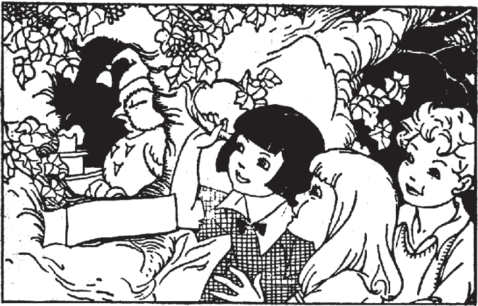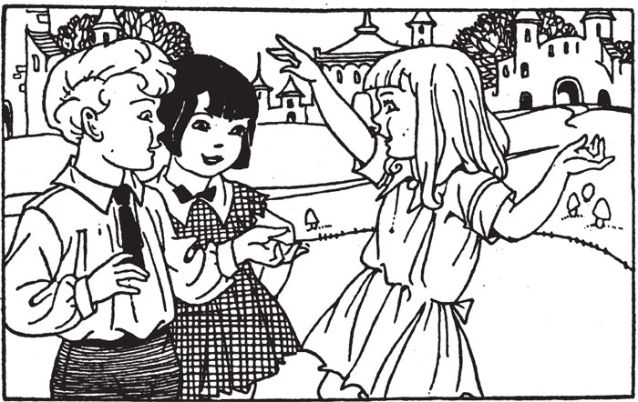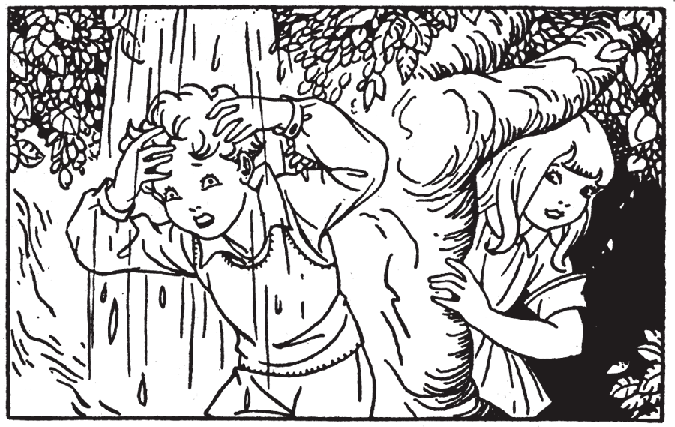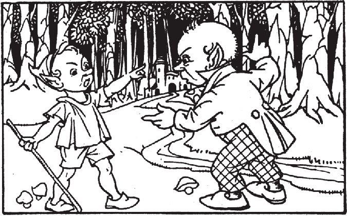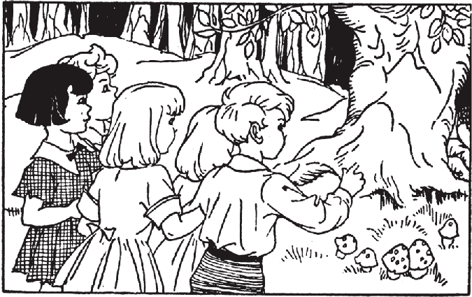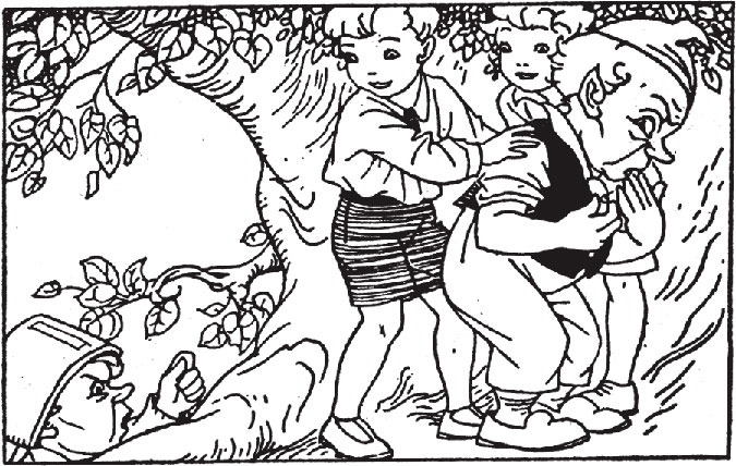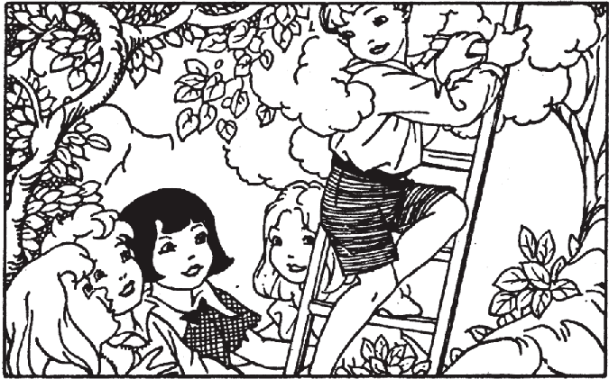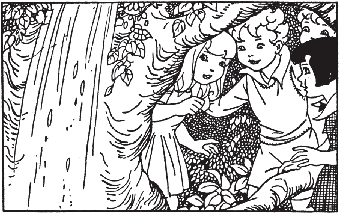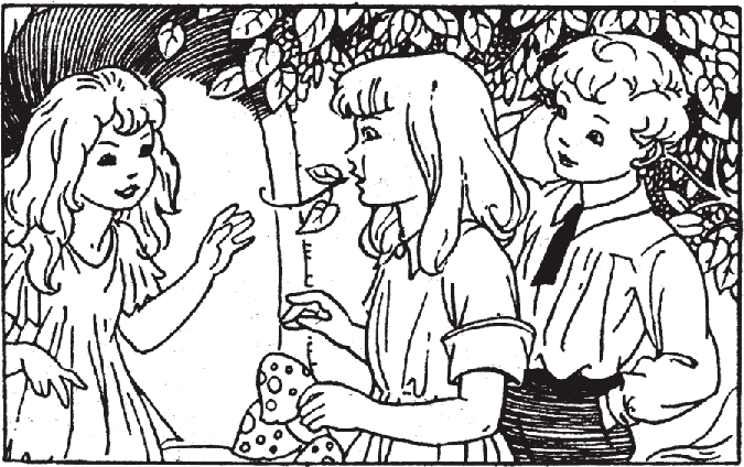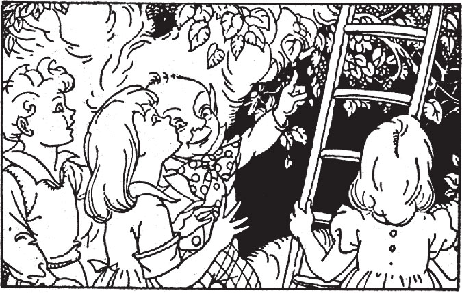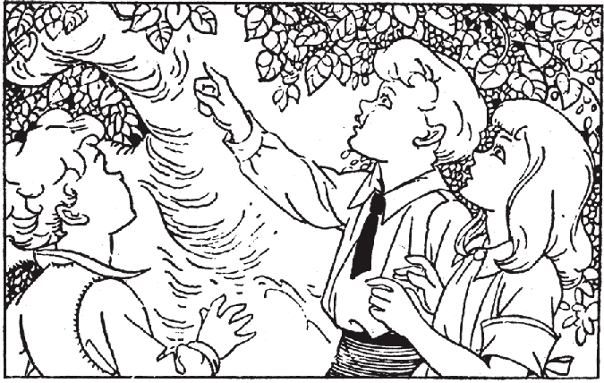 – Пошли, мы покажем вам Заколдованный лес и Дерево-выше-облаков, – сказал Джо. И дети отправились в путь.
