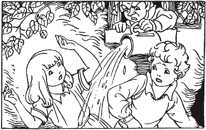 В окно Ворчуна они не заглянули и успели спрятаться до того, как мадам Постирушка выплеснула воду из своего ушата.