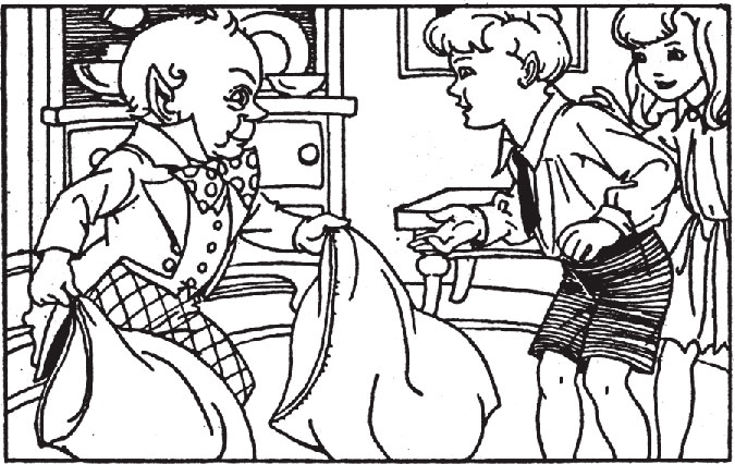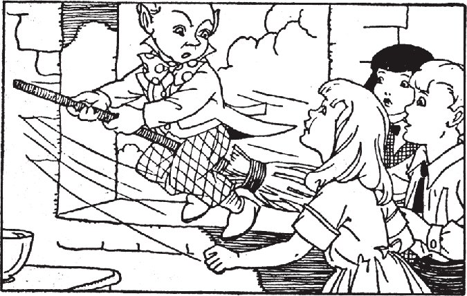 Только дети сели на метлу, как в комнату ворвались колдун с ведьмой.