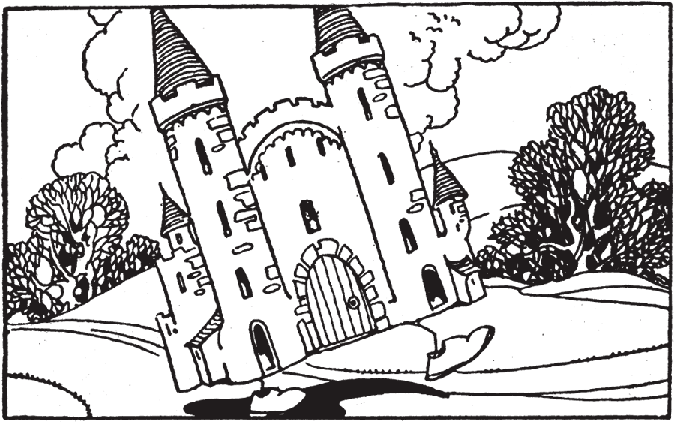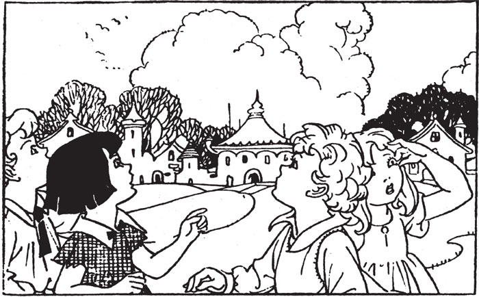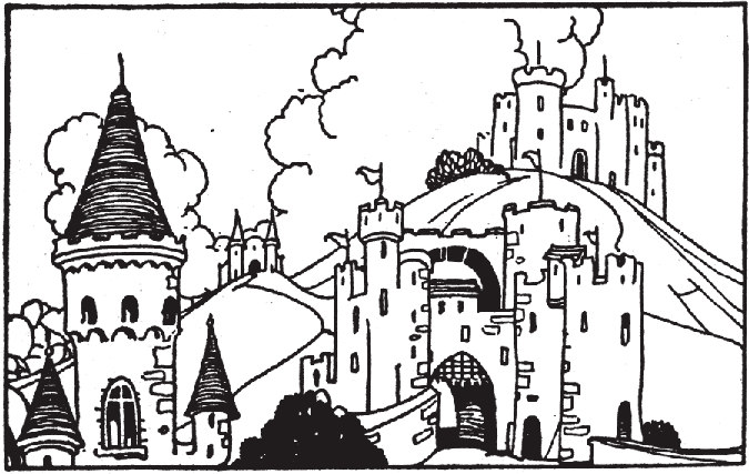 Вскарабкавшись по лесенке, Джо заглянул через дырку в облаке и увидел там много-много за́мков!