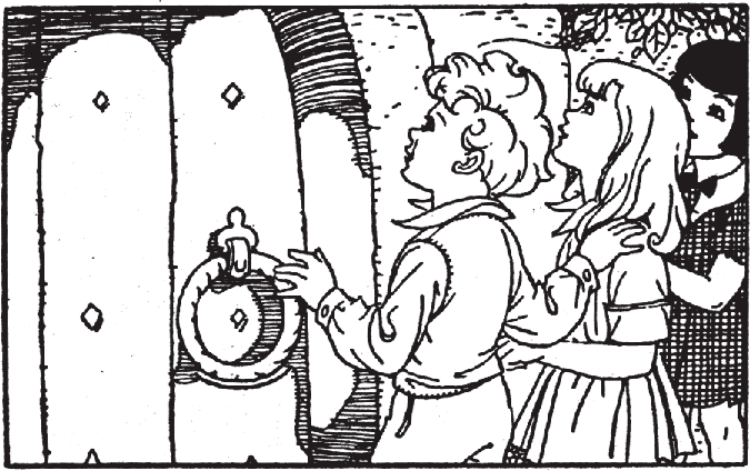 Он становился всё выше и выше и вырос до огромных размеров. Ребята оказались перед массивной дверью.