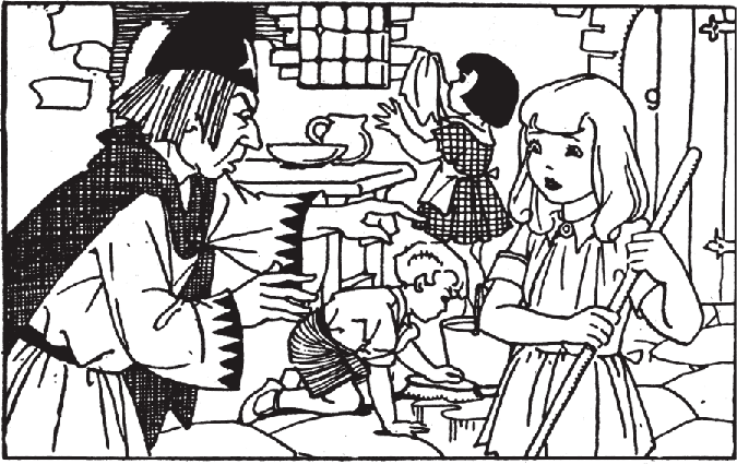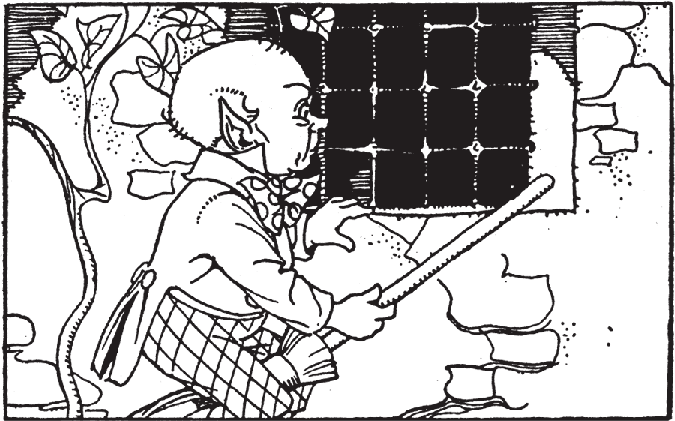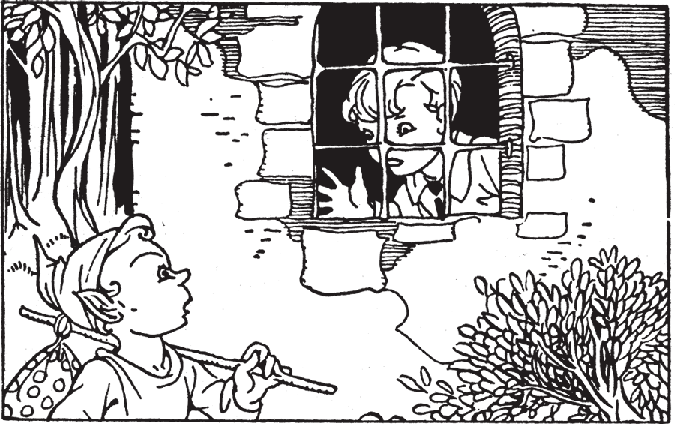 – Она мне пригодится! – подумал он. – Загляну-ка я в окна и посмотрю, что там творится. – Оседлав метлу, он взлетел.