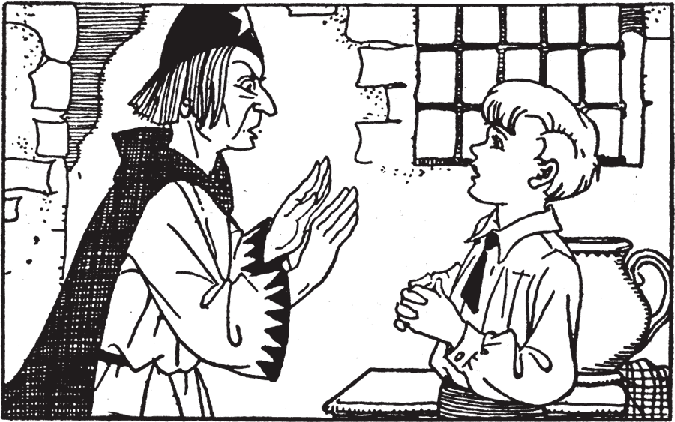 – Этажом выше есть комната без решёток, – быстро проговорил Луник. – Поскорее найдите её, пока колдун не вернулся.