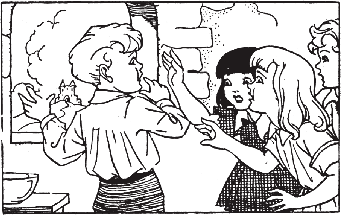 Все обернулись на стук в окно. Это был Луник. Он облетел на метле замок и всё-таки отыскал детей.