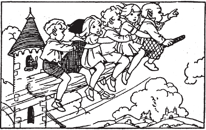 Но было уже поздно. Метла взмыла в небо и понеслась, взяв курс на Заколдованный лес.