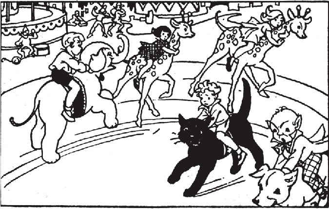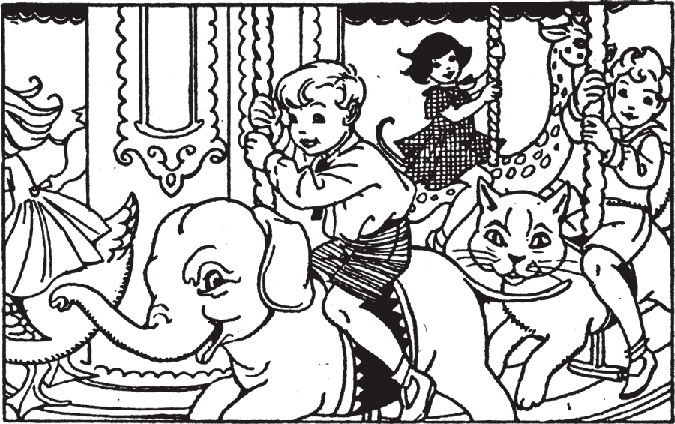 И тут заиграла музыка, и… представляете, все животные вернулись на свои места в карусели, чтобы продолжить кружение.