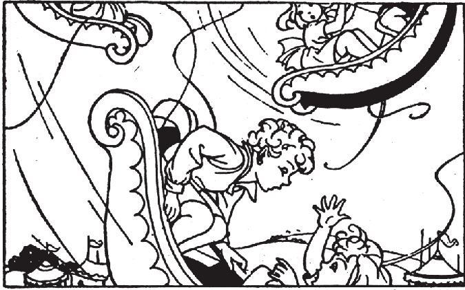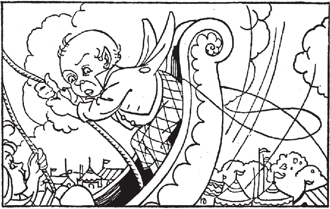 – Дети, скорее к облаку! – приказал всем Луник. – Страна качелей и каруселей вот-вот отчалит!