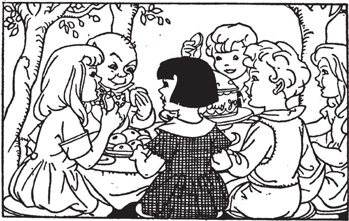 Пора было угостить друзей чем-нибудь вкусным, и тут же из ниоткуда появился праздничный стол. Началось пиршество.