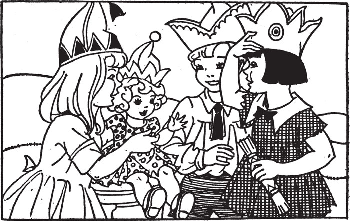 Хлопушки взрывались, из них с шумом вылетали конфетти и разноцветные шапочки – шапочек хватило даже куклам.