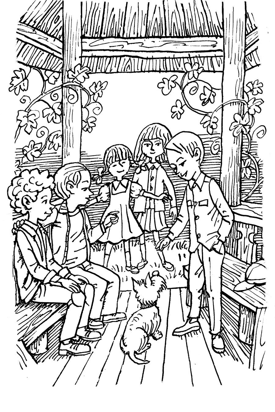 Ларри и Дейзи прибыли на следующий день – и, едва успев выпить чаю, помчались к Пипу и Бетси. Наконец-то друзья снова были вместе! Когда они все уселись в беседке, старшие принялись обсуждать уроки, учителей и школьных приятелей, и Бетси почувствовала себя лишней: в школу она ещё не ходила и не могла поддержать разговор. Вздохнув про себя, она в который раз подумала: «Ну почему мне всего лишь восемь? Ларри целых тринадцать лет, Пипу и Дейзи – двенадцать… Скорей бы стать взрослой!»