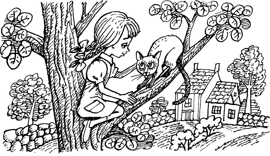 Когда первая радость прошла, Бетси задумалась: пожалуй, не стоит снимать Принцессу с дерева, пока из сада не уведут Бастера. На дереве кошка будет в безопасности. Бетси ласково улыбнулась Принцессе, и кошка замурлыкала в ответ. Ей понравилась эта маленькая девочка.