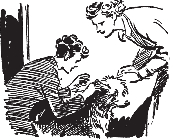 Наконец появился Тимми. Вид у него был ужасно смущённый, и он помахивал хвостом, на котором, к величайшему изумлению девочек, был ярко-голубой бант.