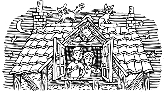 Брат и сестра быстро оделись, выскочили через заднюю дверь в тёмный сад и побежали по лужайкам прямо к калитке. Выбежав на улицу, они услышали сзади чей-то топот.