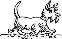 И действительно, возле калитки показался чёрный скотчтерьер: он застыл у входа в сад, навострив уши, и будто спрашивал: «А меня вы возьмёте в свою компанию?»