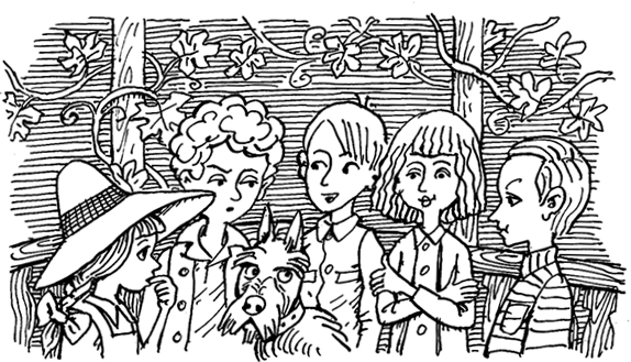 Ровно в два часа, как и договаривались, пятеро юных сыщиков и пёс встретились в саду у Пипа. Хозяин пригласил всех в старую беседку.