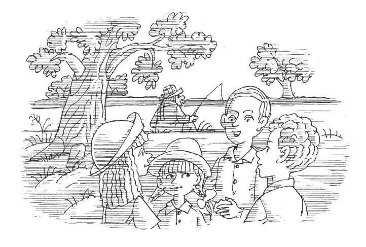 Хилари ехала на лошадке, остальные шагали рядом. Дойдя до развилки, друзья разделились. Ларри, Дейзи и Пип разошлись по домам, а Фатти, Бетси и Хилари отправились в верхнюю часть деревушки. Бастер семенил у ног Фатти, опасливо поглядывая на лошадиные копыта.