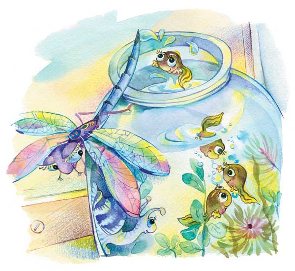 – Вот теперь твоя банка – это настоящий мини-пруд! – сказал дядя Фред. – Головастики будут чувствовать себя здесь как дома. А ну-ка, подними банку вверх и взгляни на свет. Видишь, как они ловко снуют между водорослями!