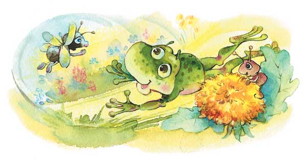 Так они и сделали. А недавно я тоже побывала в гостях у Тима и видела у него в саду бывших головастиков. Они ещё совсем маленькие – ведь лягушки растут целых пять лет, пока не станут взрослыми. Но, несмотря на это, лягушата исправно поедают мух, гусениц и червяков и очищают сад от вредителей.